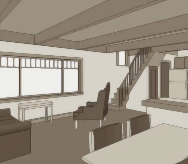 Here is a view looking at the steep cottage staircase and a beam and deck ceiling over the Great Room. There is also a stair layout for a full sized "U" shaped stair if needed. This will take more floor area but often works better with a full length loft. With the steep stair a pantry is tucked under the stairway.